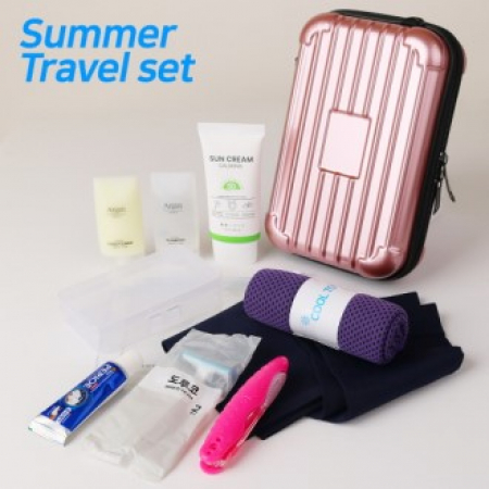 • 구성 선크림 50ml, 샴푸 30ml, 컨디셔너 30ml, 치약 20g, 접이식 칫솔, 면도기, 사출케이스 1호, 쿨타월, 쿨토시, PVC 지퍼백 파우치 2개, 빅 캐리어 파우치, 종이케이스