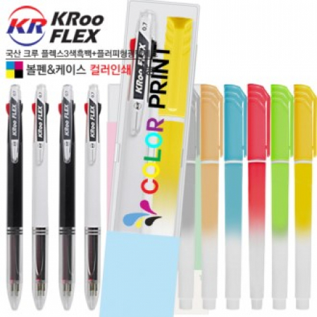 • 국산 크루 플렉스3색흑백볼펜+플러피형광펜세트 (+0원)