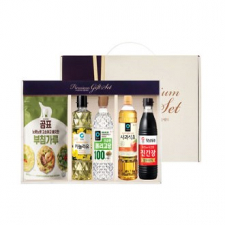 • 구성 곰표 부침가루 500g 1개, 청정원 카놀라유 500ml 1개, 청정원 올리고당 700g 1개, 청정원 사과식초 500ml 1개, 청정원 햇살담은 진간장 500ml 1개