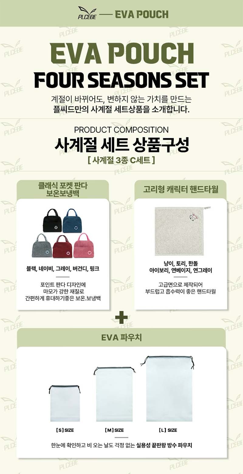 • 모델명 플씨드 사계절 3종 EVA 파우치 C세트 (클래식 포켓 판다 보온보냉백+고리형 캐릭터 핸드타월)