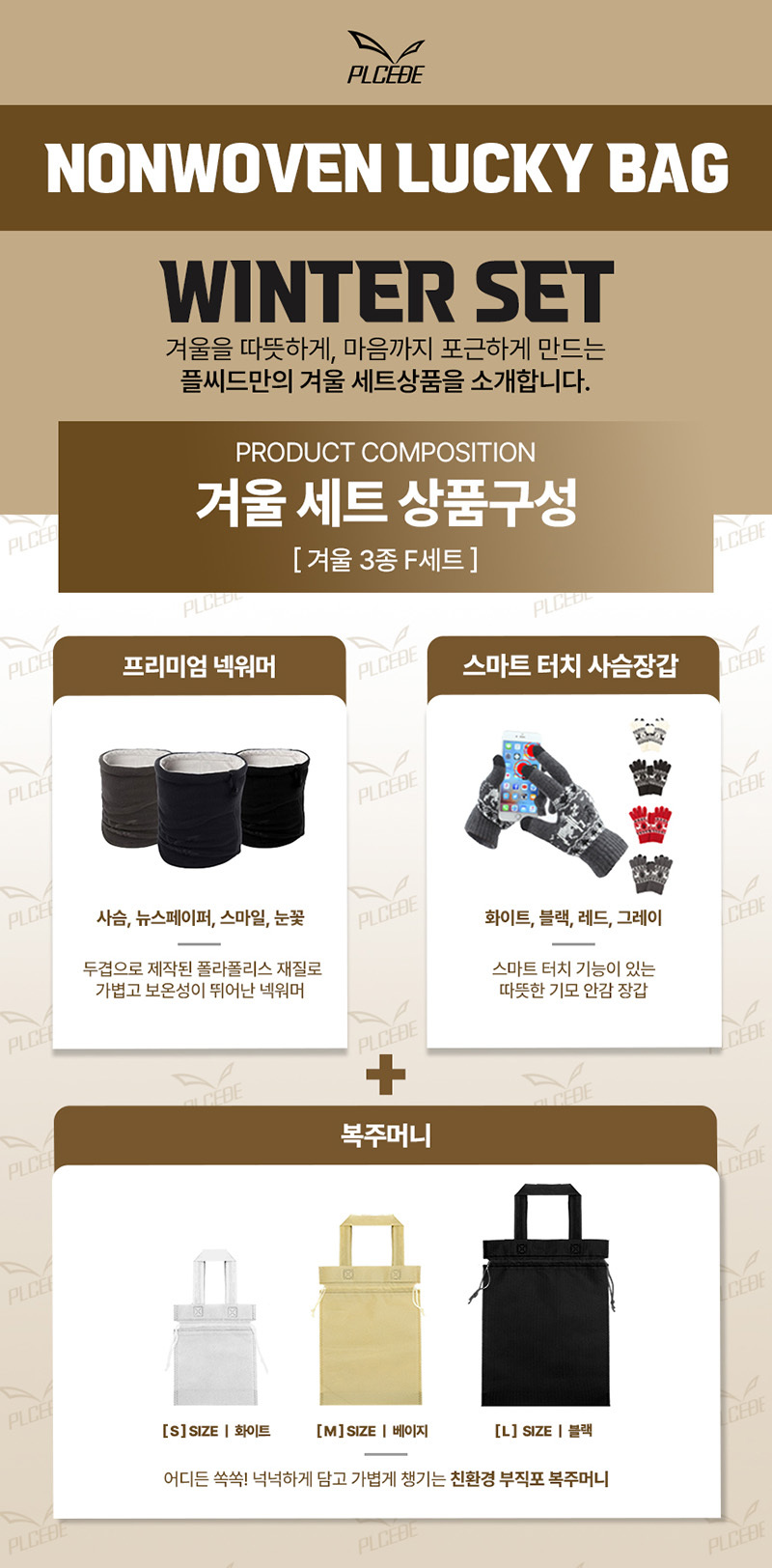 • 플씨드 겨울 3종 복주머니 파우치 F세트 (프리미엄 넥워머+사슴장갑) (+0원)
