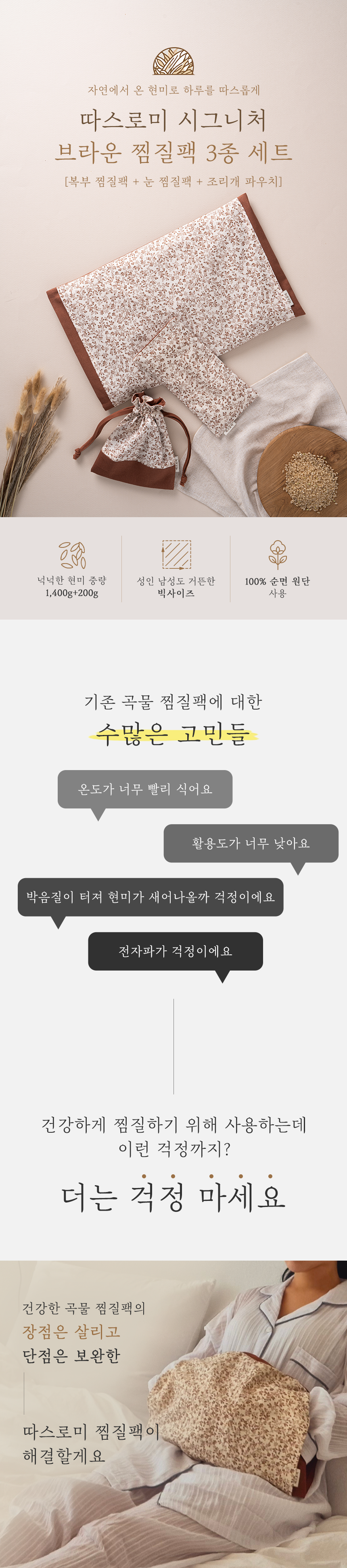 • 따스로미 시그니처 브라운 현미 복부+눈 찜질팩+파우치 3종세트 (+0원)