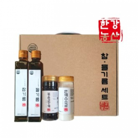 • [한강농산] 참기름들기름4종세트(볶음검정깨+안데스소금) 명절선물세트 답례품 (+0원)