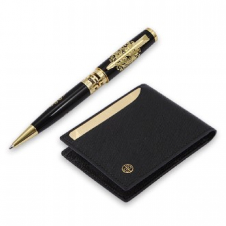 (외국인선물)고급 곤룡포 금장 볼펜 천연소가죽 순금카드 각인 남성 반지갑 비즈니스 필수템