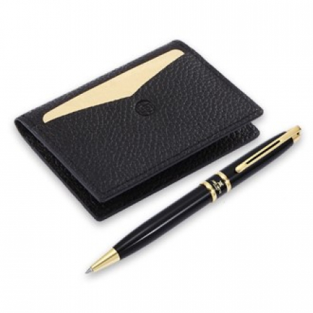 (아버지선물)고급 금장 서명 볼펜 순금판 각인 심플 소가죽 카드지갑 명함지갑 비즈니스 선물
