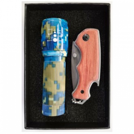 G292983 밀리터리 스타일 줌-인 후레쉬 + 우드손잡이 나이프