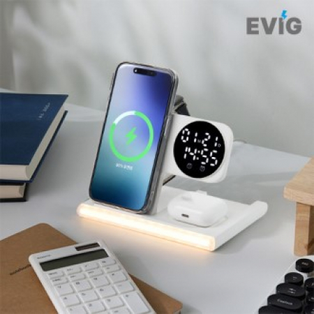 EVIG 5in1 접이식 15W 고속무선충전 무드램프 알람시계(애플+갤럭시워치 공용충전) 요약정보 및 구매
