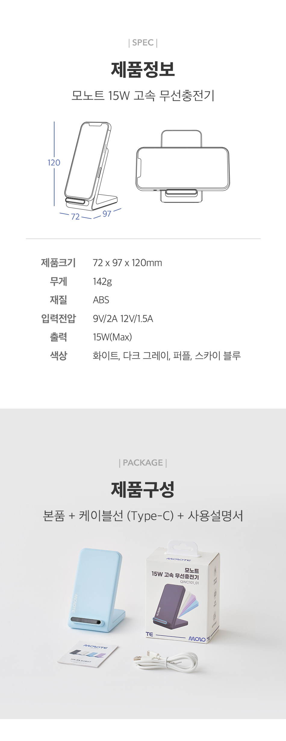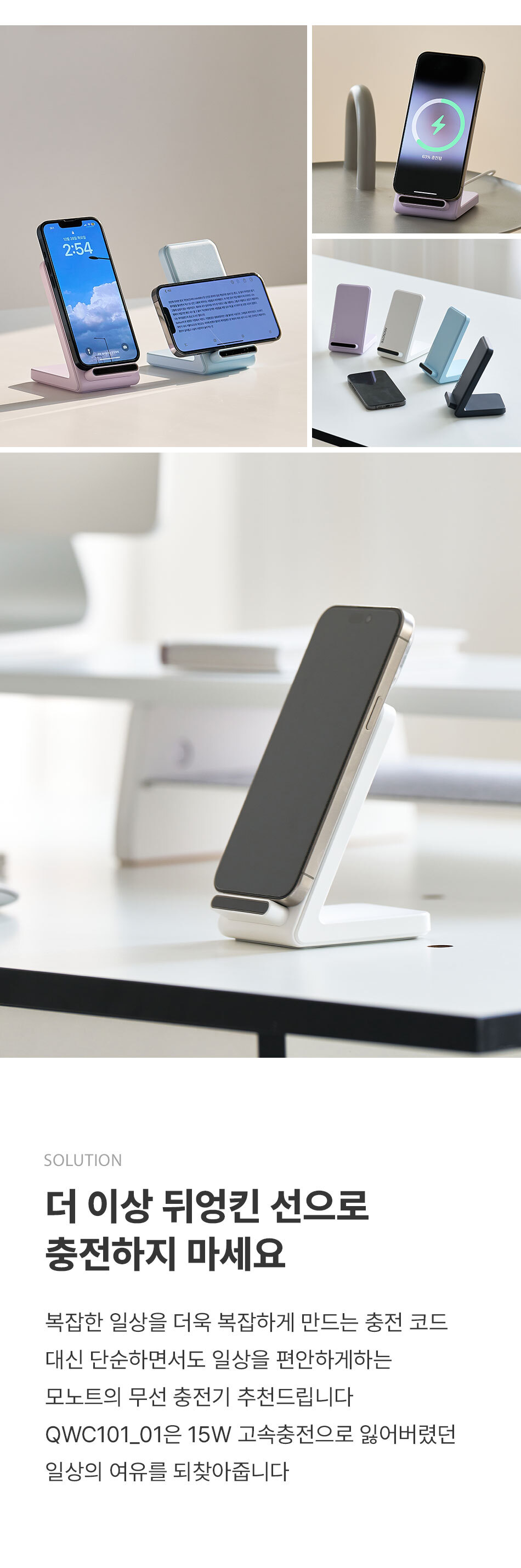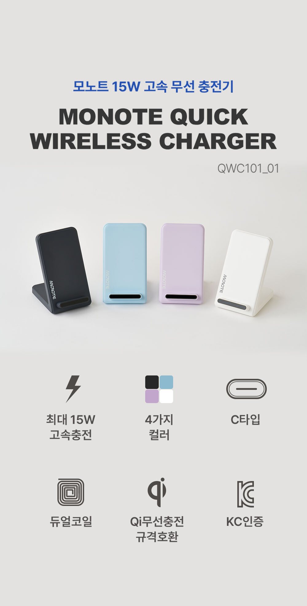 • 모델명 모노트 15W 고속 무선충전기 거치대 QWC101 아이폰 갤럭시 S24 울트라 호환