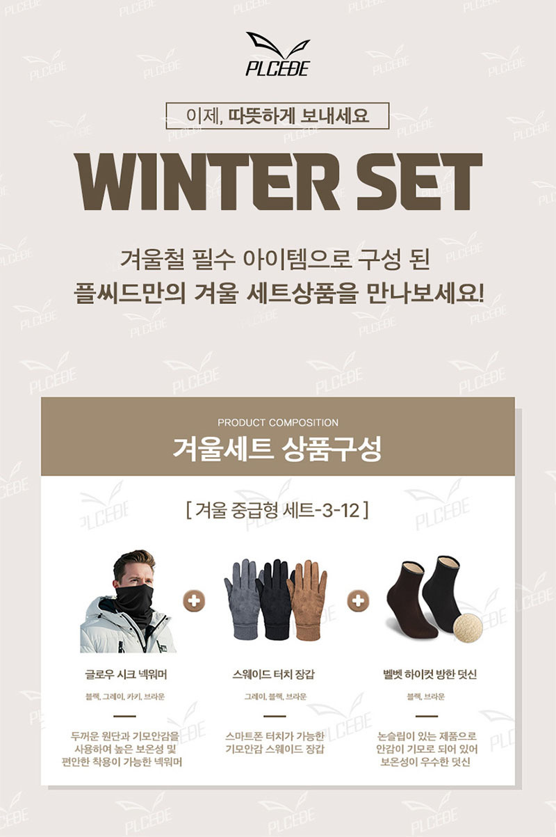 • 위노이 글로우 시크 넥워머+스웨이드 터치 장갑+벨벳 하이컷 방한 덧신 3종 세트 (+0원)