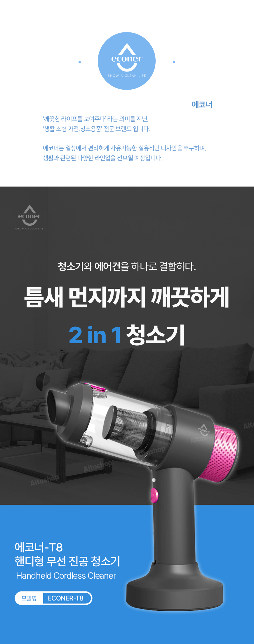 에코너-T8 핸디형 무선 진공 청소기 요약정보 및 구매