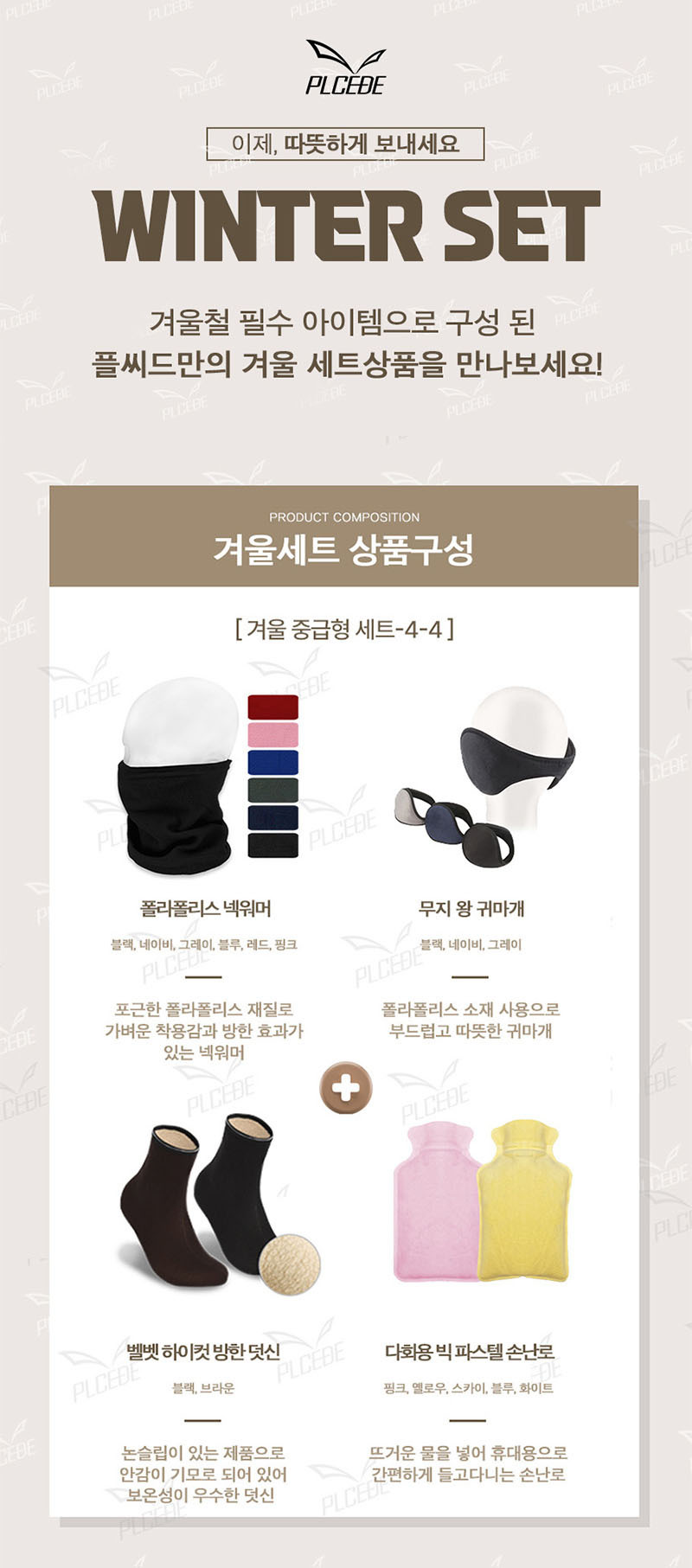 위노이 폴라폴리스 넥워머+왕 귀마개+벨벳 하이컷 방한 덧신+다용도 손난로 4종 세트 #2