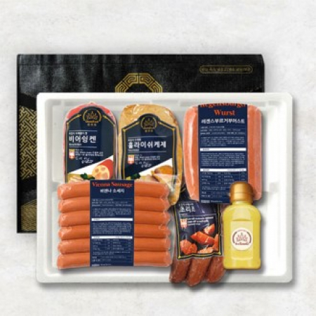 • 사이즈 비어슁켄 380g, 훌라이쉬케제 380g, 초리조 270g, 비엔나소시지 250g, 레겐스브루거 250g, 증정(머스타드 소스) + 부직포 선물가방