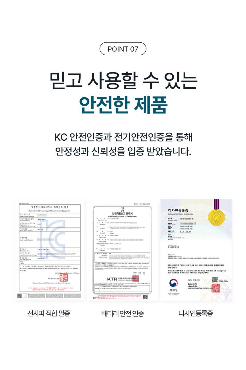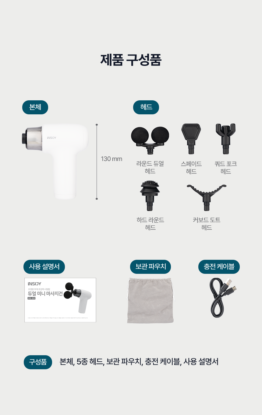 • 구성 본품, 헤드 5종, 사용설명서, 충전케이블, 전용 파우치