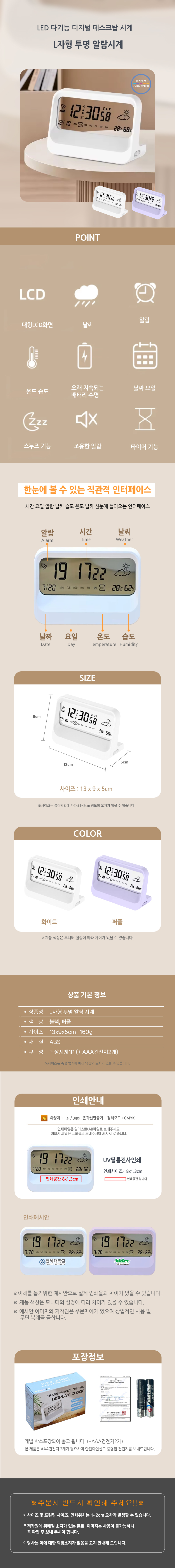 다기능 L자형 투명 알람시계 13x9x5cm 요약정보 및 구매