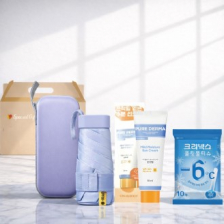 3종세트 LG퓨어더마 선크림 쿨 자외선차단 사각5단 암막양우산 크리넥스 쿨링 물티슈 아이스 여행용 여름 폭염 쿨세트 자외선차단