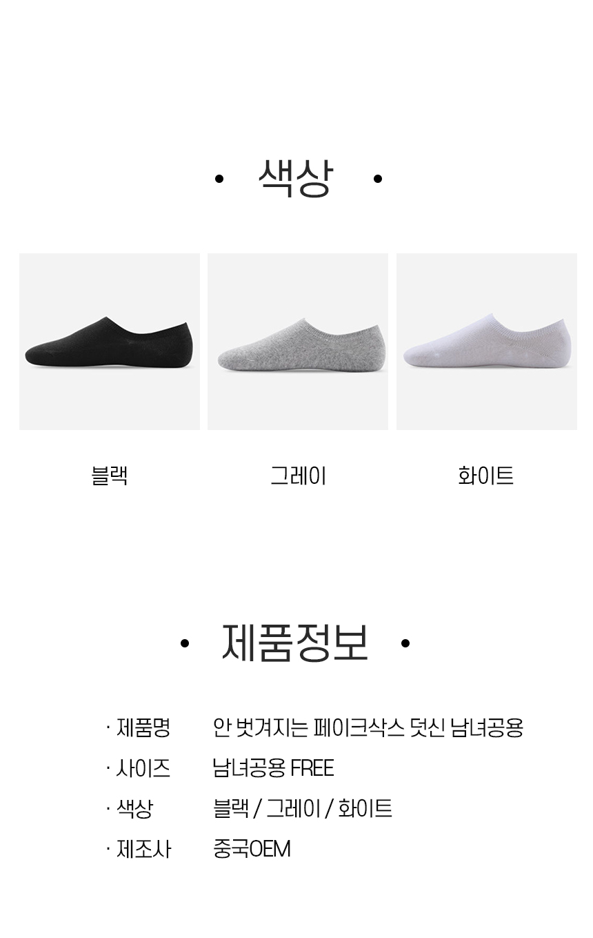 • 기본 페이크삭스 덧신 남성 여성 남녀공용 2620 (+0원)