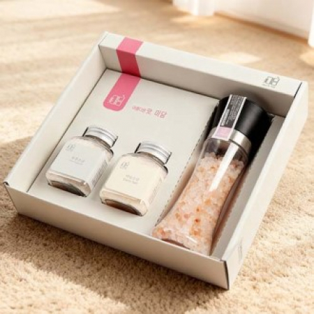• 구성 핑크소금 그라인더250g, 후추소금 150g, 마늘소금 150g, 최고급 선물상자 (밀크)