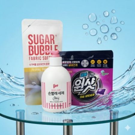 • 구성 슈가버블 버블원샷 캡슐세제 + 애경 울샴푸 손빨래세제 380ml + 슈가버블 섬유유연제 + 끈케이스 + 케이스 선택 가능