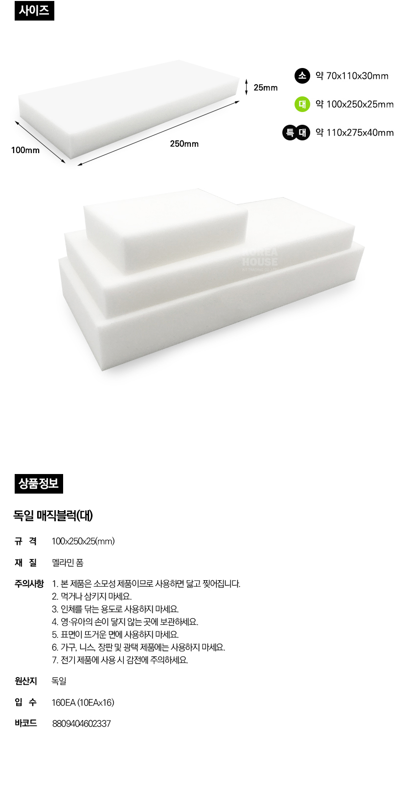 독일 매직블럭(대) 100x250x25(mm) 요약정보 및 구매