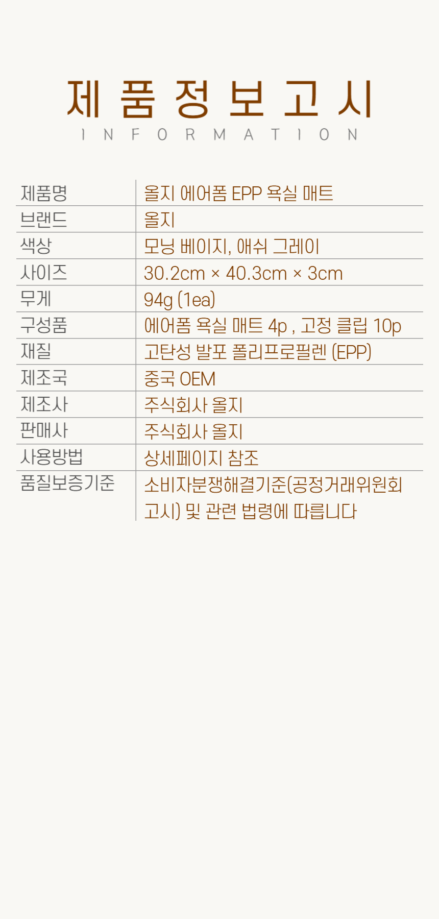 올지 에어폼 EPP 욕실매트 4P세트 미끄럼방지 화장실 매트 건식 세탁실 다용도실 현관 요약정보 및 구매