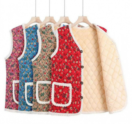 G296988 촌캉스 꽃무늬 조끼 따뜻한 극강 융털 겨울