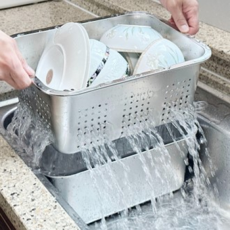 • 올지 물빠짐 설거지통 2단세트 7L 중형 스텐 사각 설겆이 통 불림 싱크대 스테인레스 304 주방 키친 (+0원)