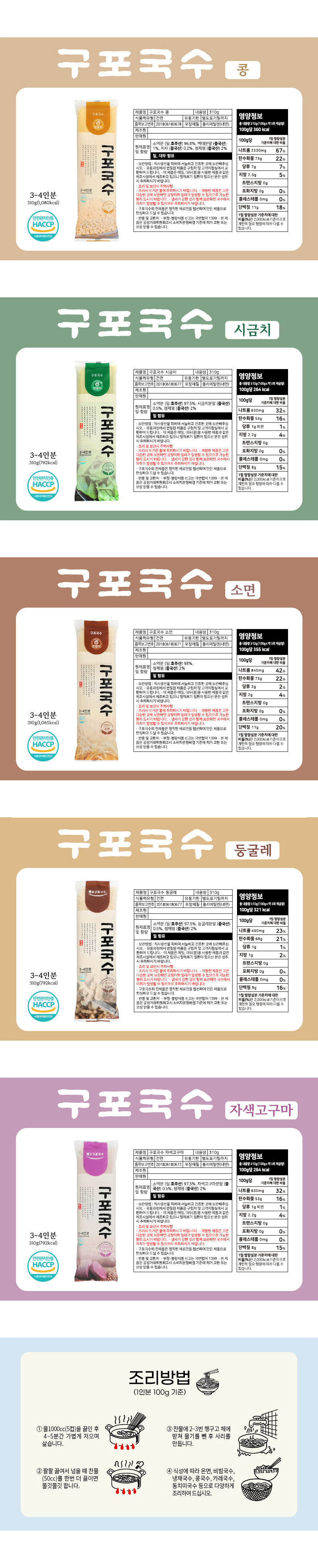 • 구성 콩소면+시금치소면+일반소면+자색고구마소면+둥굴레소면