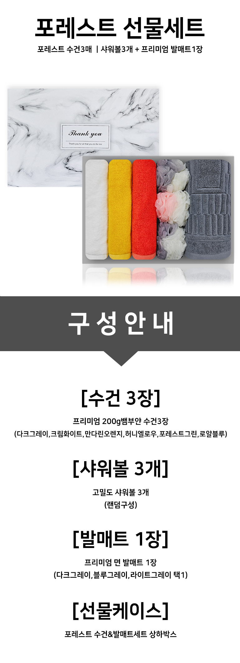 • 모델명 포레스트 르블랑 선물세트 200g뱀부얀 3매 + 샤워볼 3개 + 면 발매트 1장