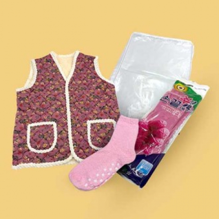 G304525 김장조끼 3종세트 꽃무늬조끼 털조끼 고무장갑 수면양말
