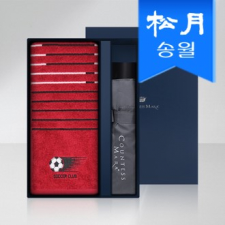 G308064 송월 스포츠 타올 우산 2매 선물세트 축구 스포츠 타월 1매 + 3단 폰지 우산 1매