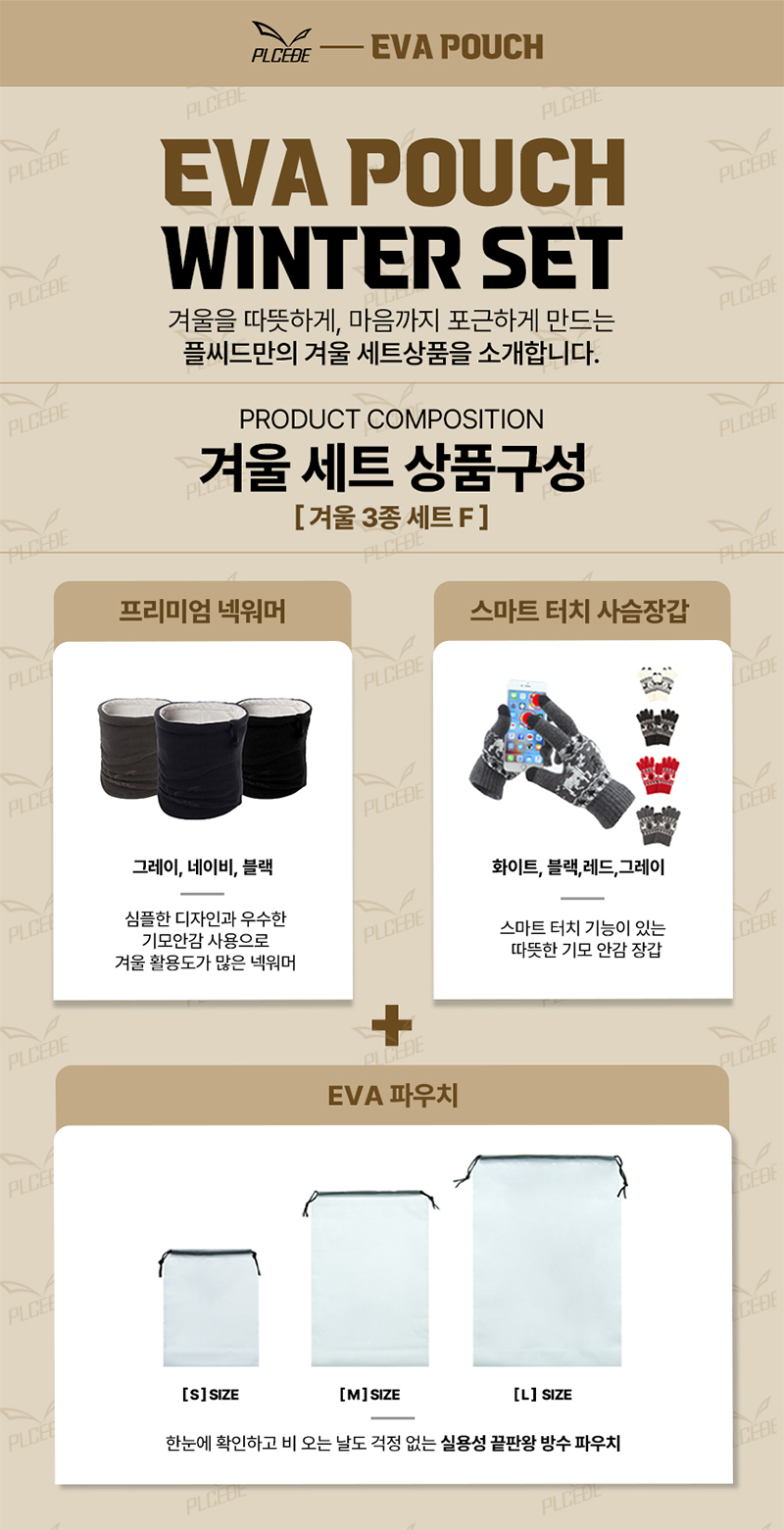 • 모델명 플씨드 겨울 3종 EVA파우치 F세트 (프리미엄 넥워머+사슴장갑)
