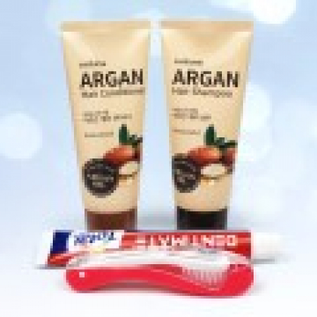 • 과일나라 컨퓸 아르간 샴푸+컨디셔너 + 크리오 덴티메이트 치약 + 고급형 접이식 칫솔 + 종이케이스 (+0원)