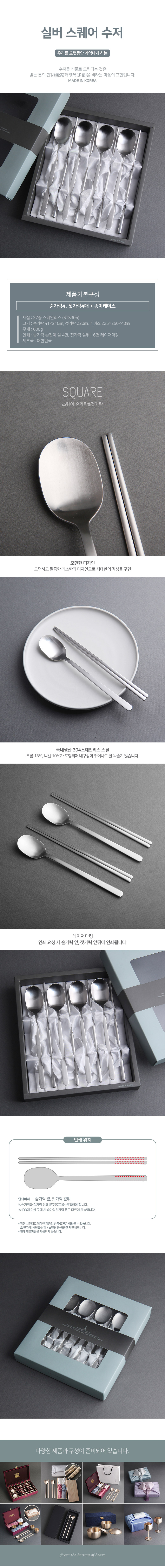 • 실버 스퀘어 수저 4P (수저인쇄무료) (+0원)