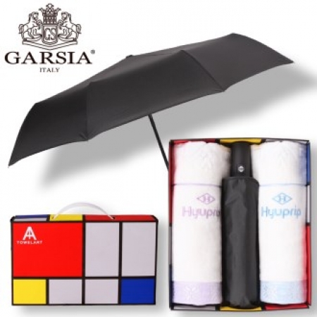G176757 가르시아 3단 베이직 완전 자동우산 +눈꽃 타올 2P 우산타올세트