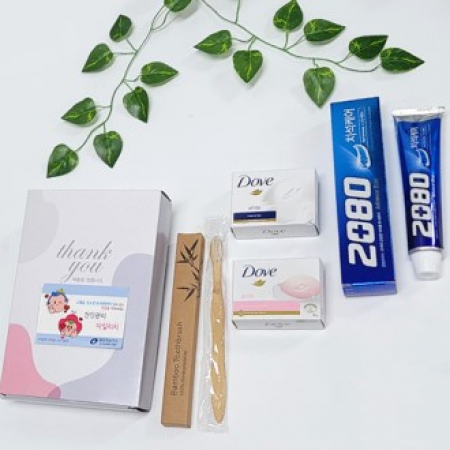 • 구성 애경 2080치약 120g 1개, 도브 비누 2개, 대나무칫솔 1개, 선물상자