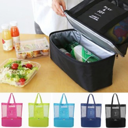 • 2단 메쉬 보냉가방 여행가방 2단 피크닉가방 시장가방 (+0원)