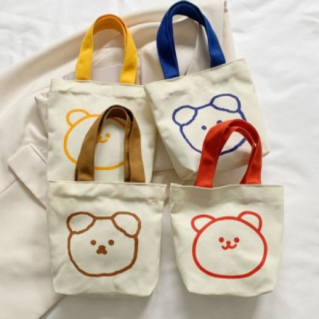• 곰돌이 컬러손잡이 에코백 캔버스가방 (+0원)