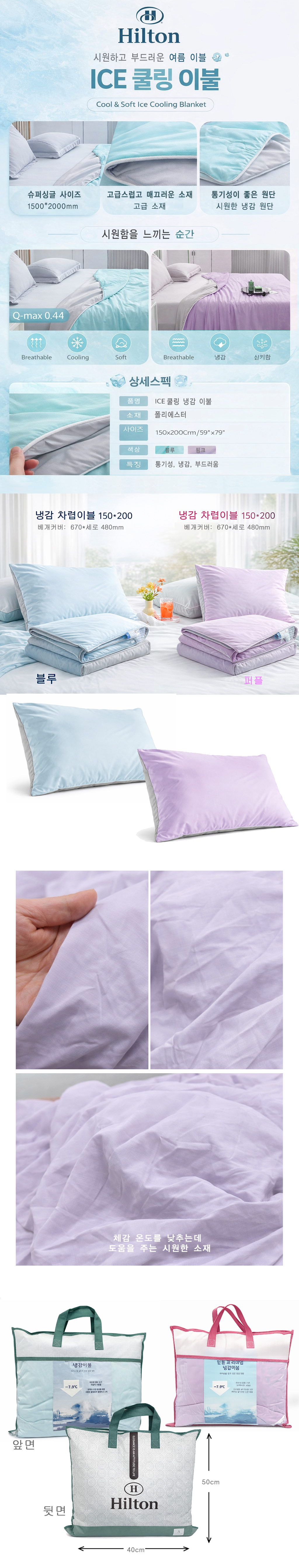 [힐튼] 여름용 냉감이블+베개커버(1500*2000mm) 요약정보 및 구매