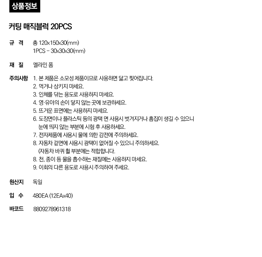 커팅매직블럭 20pcs 120x150x30(mm) 요약정보 및 구매
