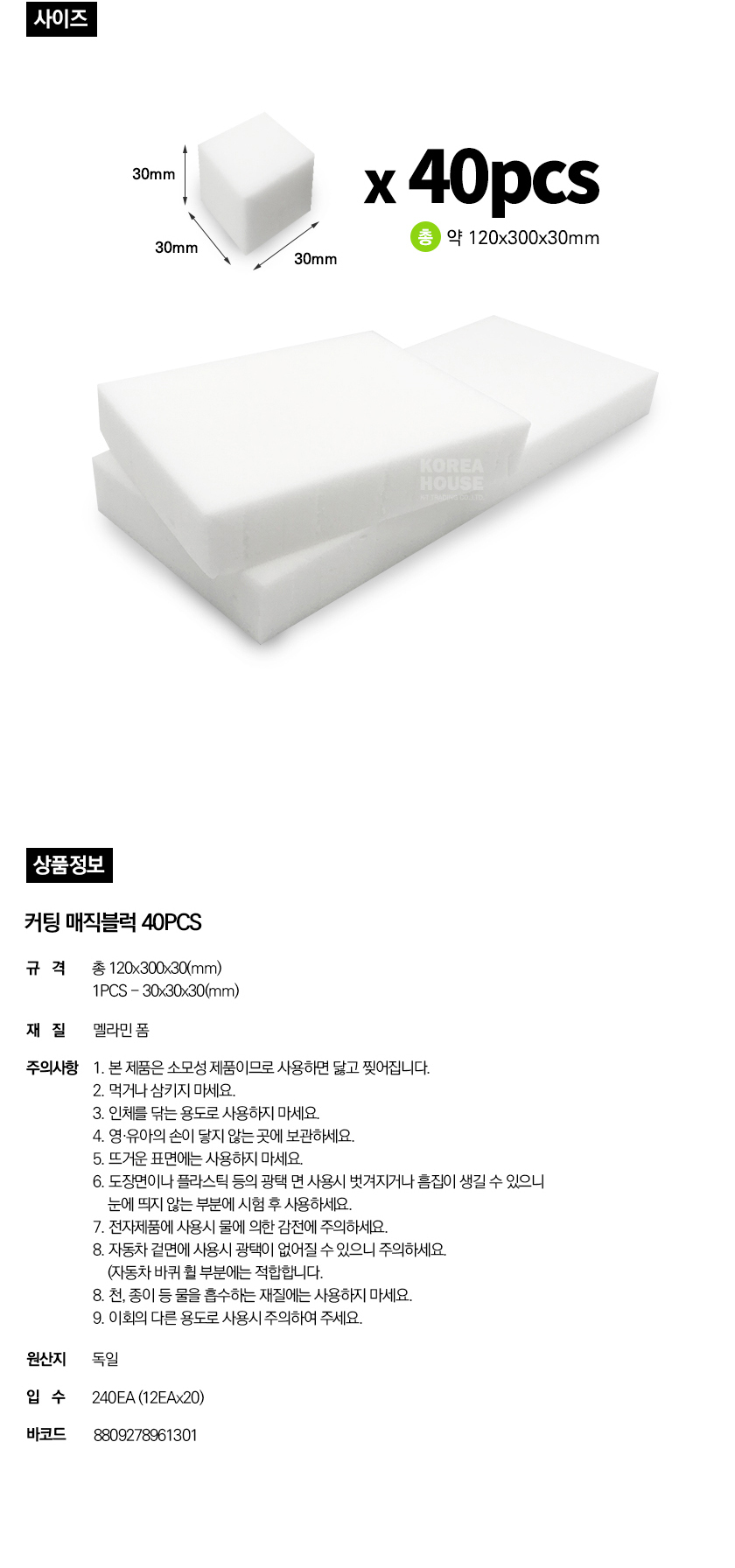 커팅매직블럭 40pcs 120x300x30(mm) 요약정보 및 구매