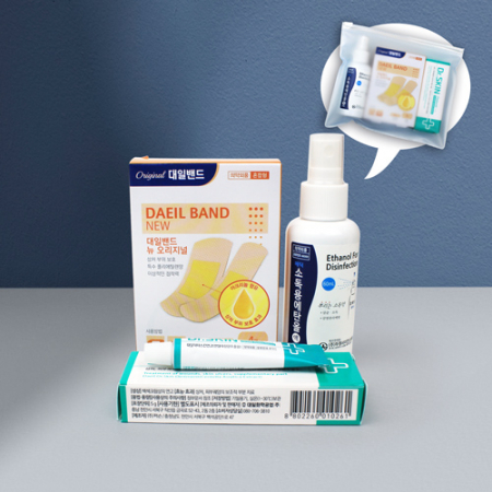 • 대일밴드 오리지널 표준형8매 대형4매 + 닥터스킨 상처연고 + 스프레이 에탄올 소독제 + 지퍼백 (+0원)