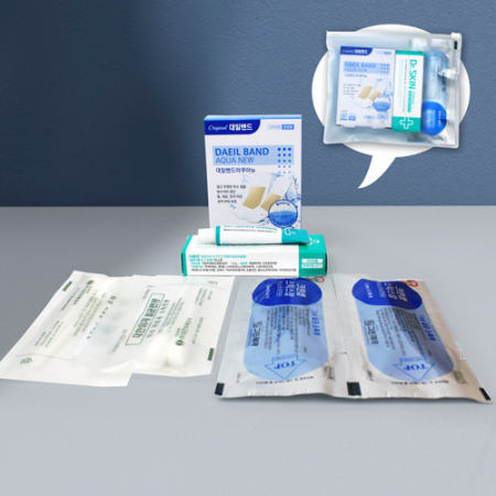 • 구성 대일밴드 아쿠아 방수밴드 표준형 8매 대형4매 + 닥터스킨 상처연고 + 스팃스왑 2매 + 멸균면봉2매입 2개 + 지퍼백
